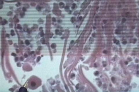 At this point, Dr Gomez enlisted the help of Australian lawyer Ron Tesoriero, who had experience of leading enquiries of this kind. They took the sample to a forensic laboratory in San Francisco for blind testing. Here, Dr Robert Lawrence extracted a slice of tissue and fixed it on a slide that was code-stamped 99-441. Lawrence thought that the cells resembled those of human epidermis (skin tissue) but laboratories around the world came to different conclusions. Some reported muscle tissue, possibly from the heart.
