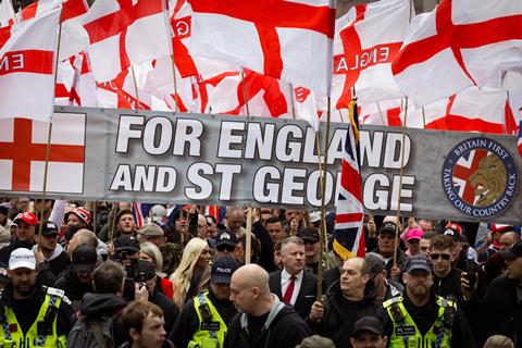 But it is also, as we are only too aware, the flag of the far right in England. Despite his Middle Eastern origins, St George’s flag is sometimes used as a symbol of white supremacy, anti-immigrant feeling and Islamophobia.